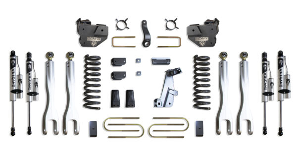 MAX TRAC SUSPENSION’S KIT# K947341VRL IS A COMPLETE 4″ LIFT KIT INCLUDING DIESEL COILS, FORGED ALUMINUM 4-LINKS, TRAC BAR BRACKET, PITMAN ARM, SWAY BAR BRACKETS, BUMP STOPS, BLOCKS, U-BOLTS & FRONT/REAR VULCAN SERIES RESERVOIR SHOCKS
