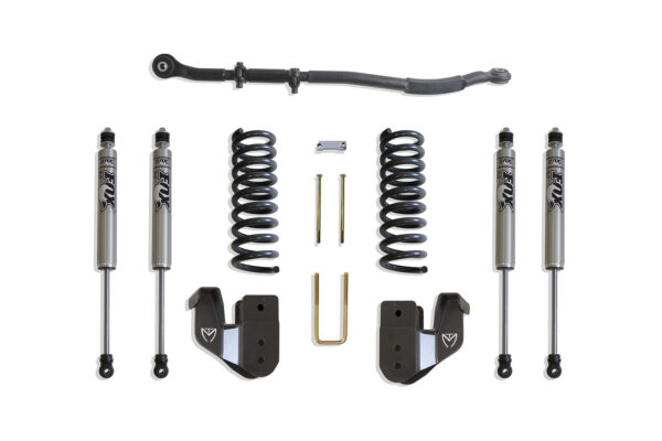 MAX TRAC SUSPENSION’S KIT# K947325F IS A COMPLETE 2.5″ LIFT KIT INCLUDING DIESEL COILS, RADIUS ARM BRACKETS, ADJ TRAC BAR & FRONT/REAR FOX 2.0 PERFORMANCE SERIES SHOCKS
