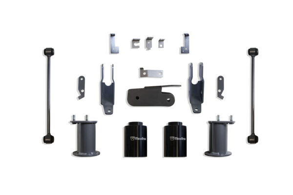MAX TRAC SUSPENSION’S PART# 901050MR IS A 5″ REAR BOX KIT INCLUDING 5″ LIFT COIL SPACERS, TRAC BAR BRACKET, SWAY BAR END LINKS , SENSOR BRACKETS & REAR SHOCK EXTENDERS