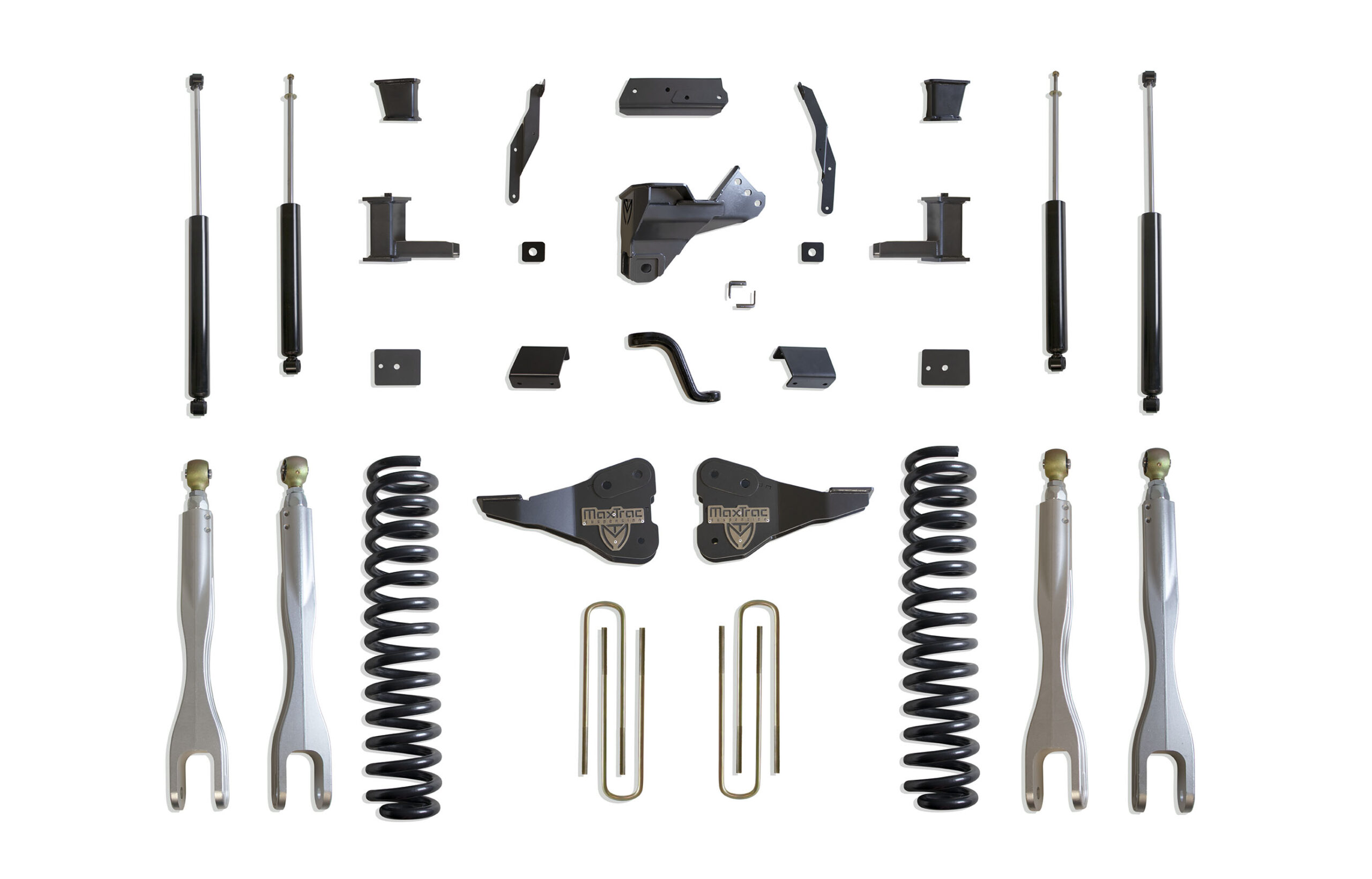 MAX TRAC SUSPENSION’S KIT# K943385L IS A COMPLETE 8″ LIFT KIT INCLUDING DIESEL COILS, FORGED ALUMINUM 4 LINKS, TRAC BAR BRACKET, SWAY BAR BRACKETS, BUMP STOP EXTENSIONS, PITMAN ARM, BLOCKS, U-BOLTS & FRONT/REAR MAX TRAC SHOCKS