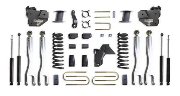 MAX TRAC SUSPENSION’S KIT# K947585LA IS A COMPLETE 8″ LIFT KIT INCLUDING DIESEL COILS, FORGED ALUMINUM 4 LINKS, TRAC BAR BRACKET, PITMAN ARM, SWAY BAR BRACKETS, BUMP STOPS, BLOCKS, U-BOLTS, REAR AIR BAG SPACERS & FRONT/REAR MAX TRAC SHOCKS